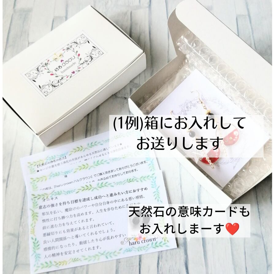 天然石のパワーとUVレジンの透明感ある輝きをお楽しみ頂けると幸いです。