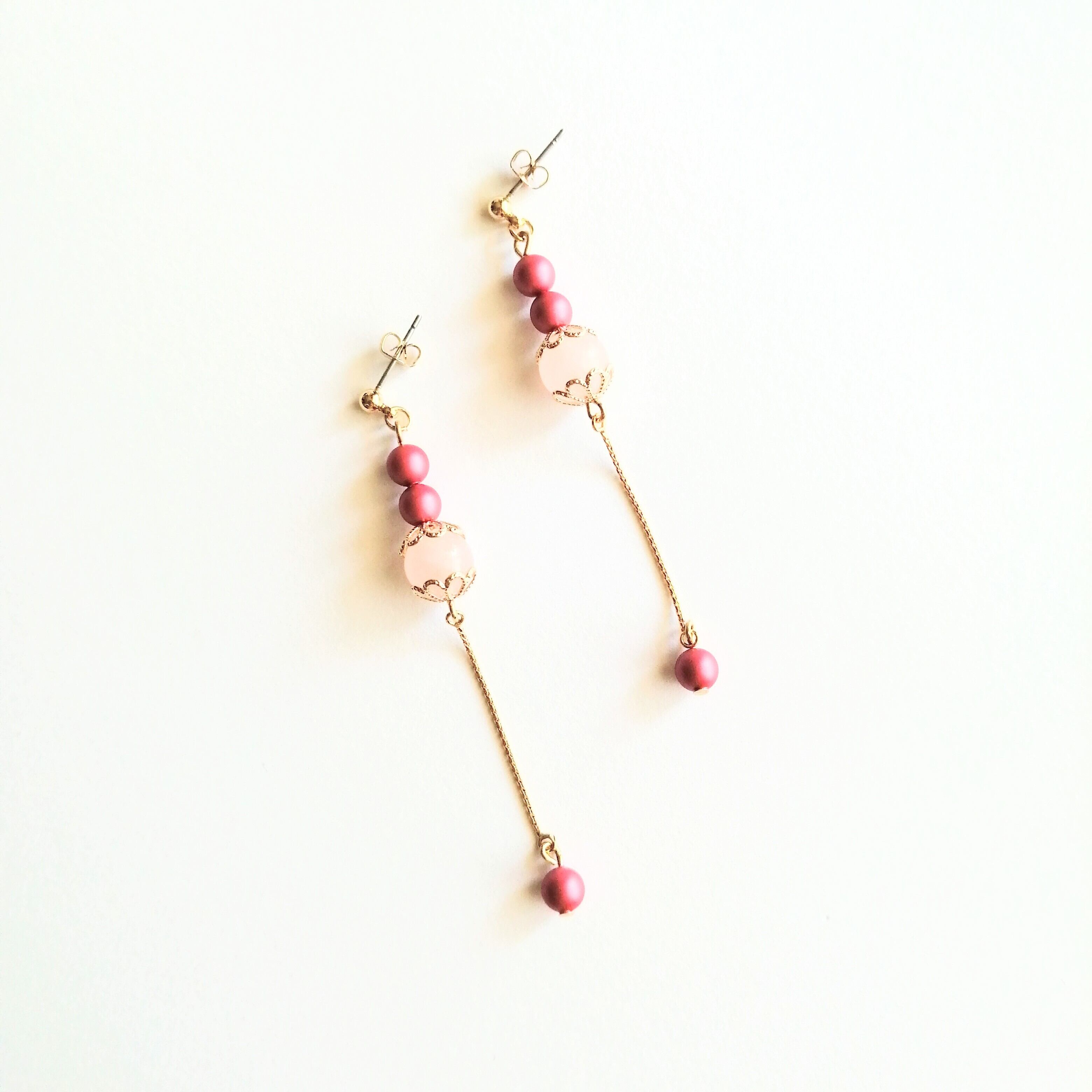 ピンクで合わせたことで可愛いイメージのピアスになりました。