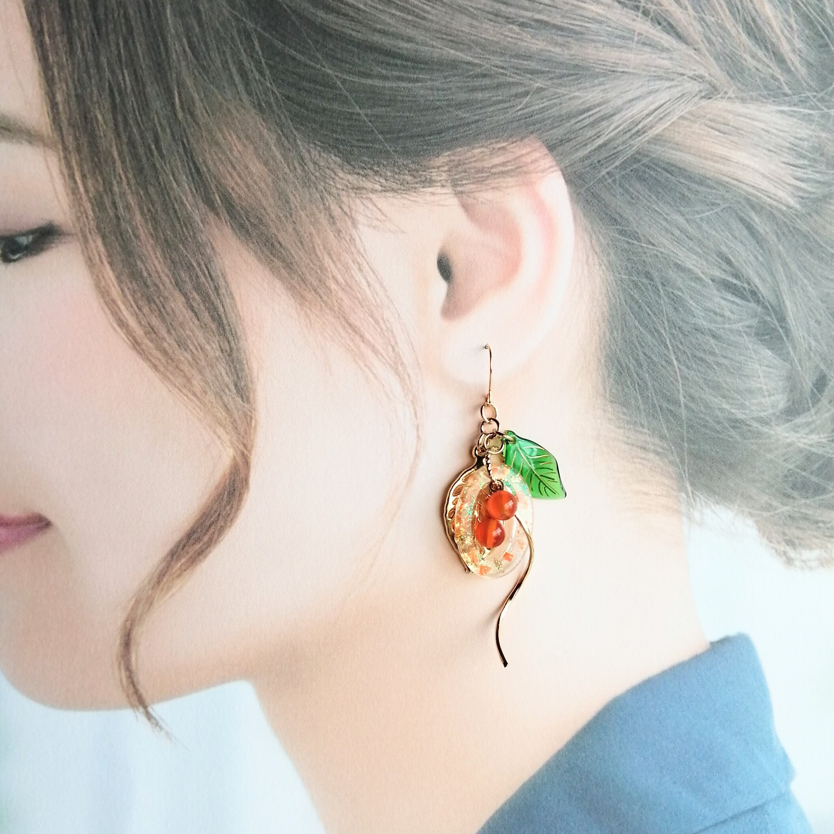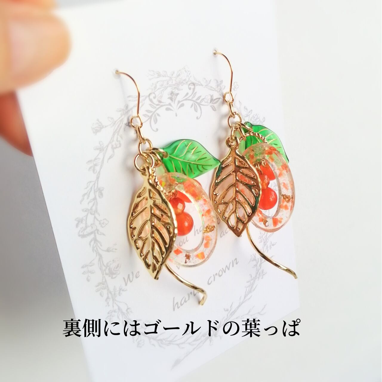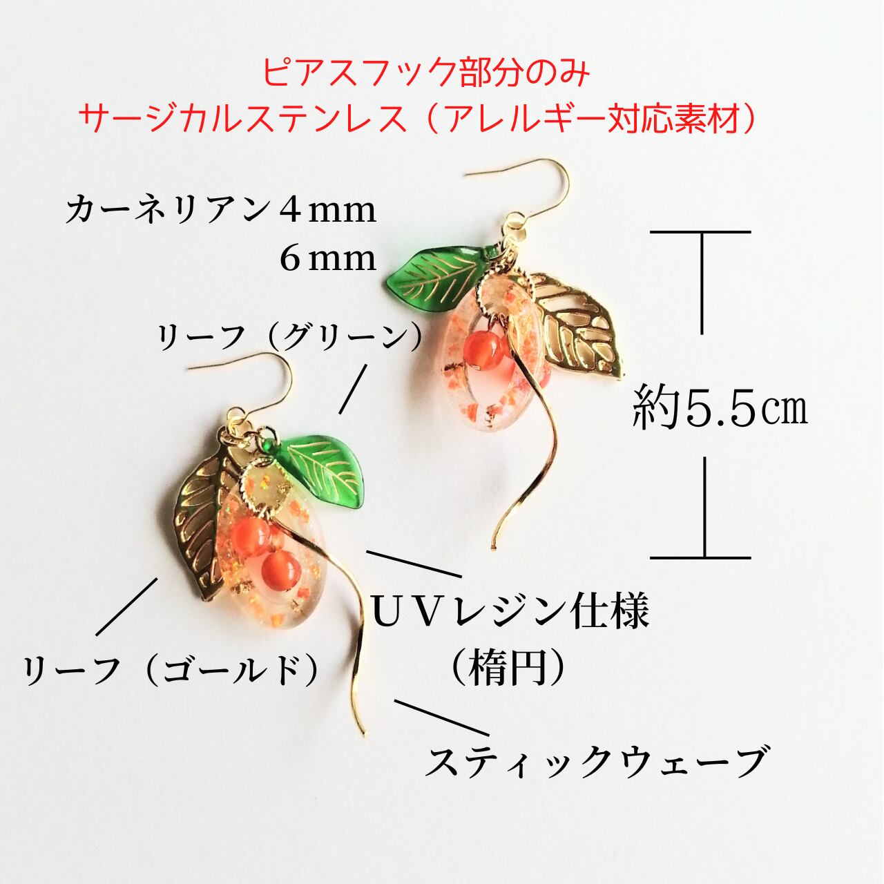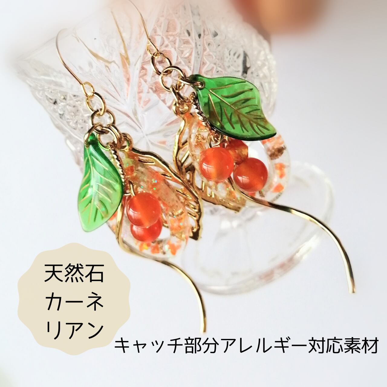 こちらはカーネリアン(天然石パワーストーン)とリーフチャームのピアスの商品ページです。
