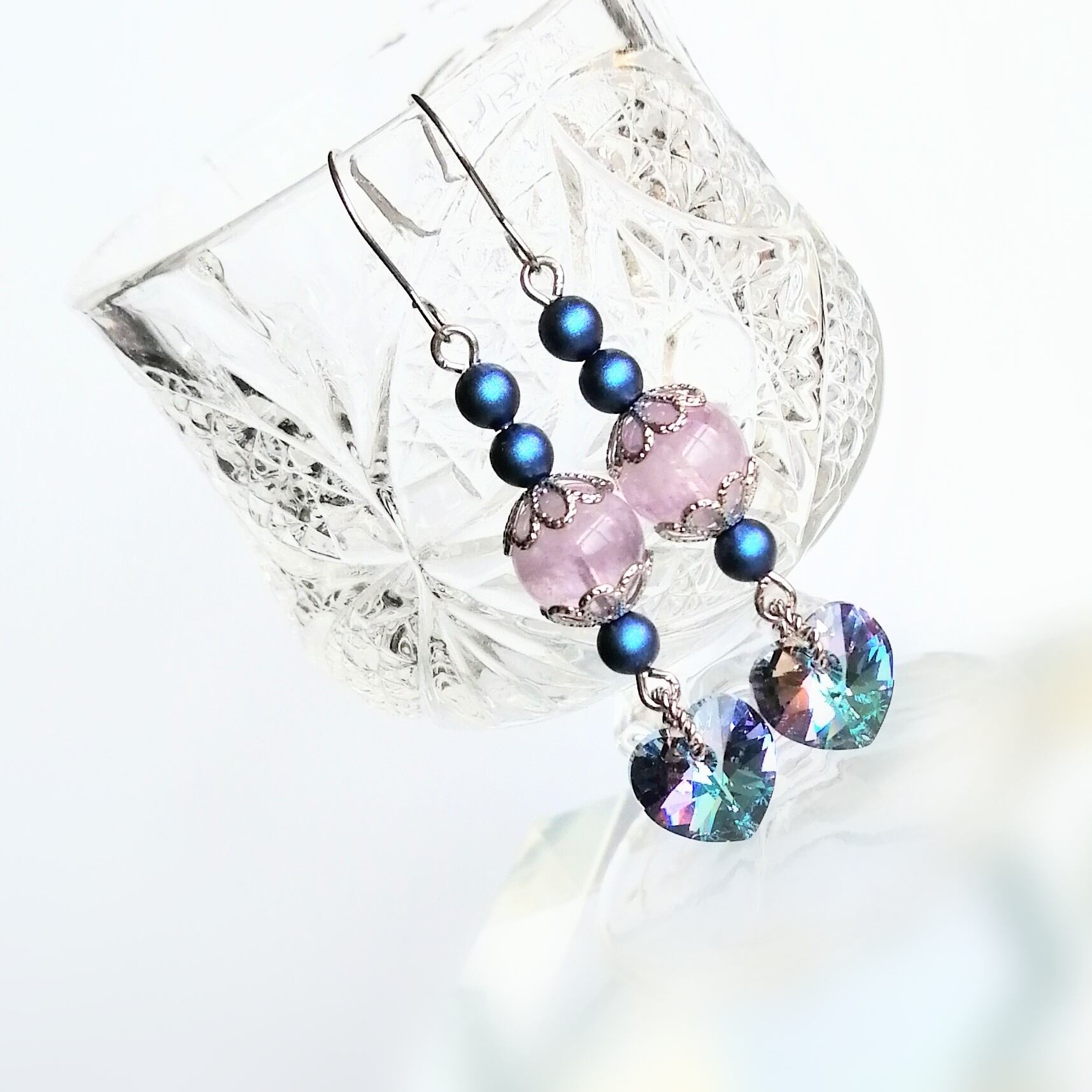 さらに、クリスタル(イデラサント)のダークブルーパールを合わせて、甘くならないような配色にしました。