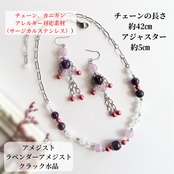 【舞い踊るアメジスト】ネックレス&ピアス(イヤリング)セット