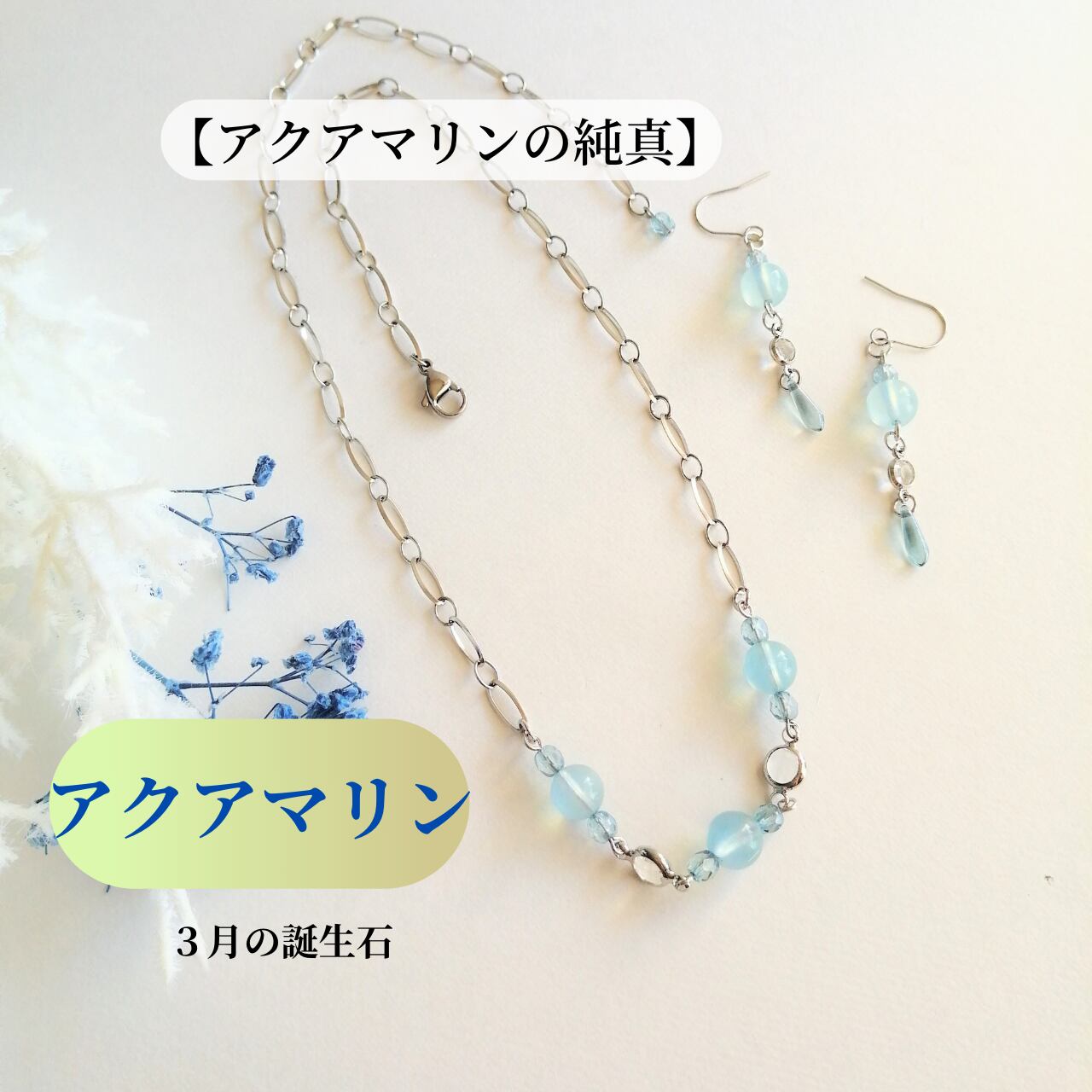 【アクアマリンの純真】ネックレス&ピアス(イヤリング)セット
