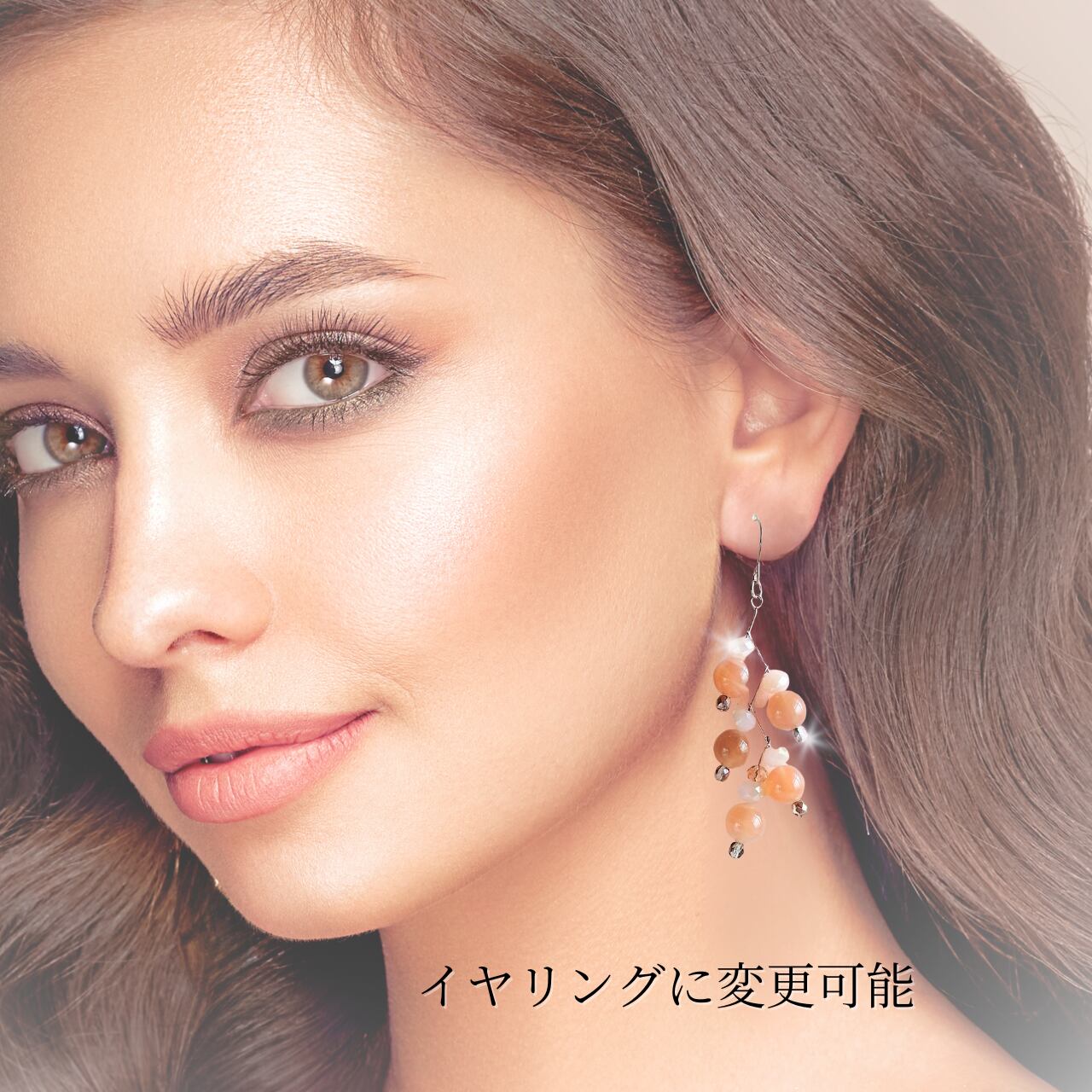 天然石のオレンジムーンストーンが揺れるピアス(イヤリング)です