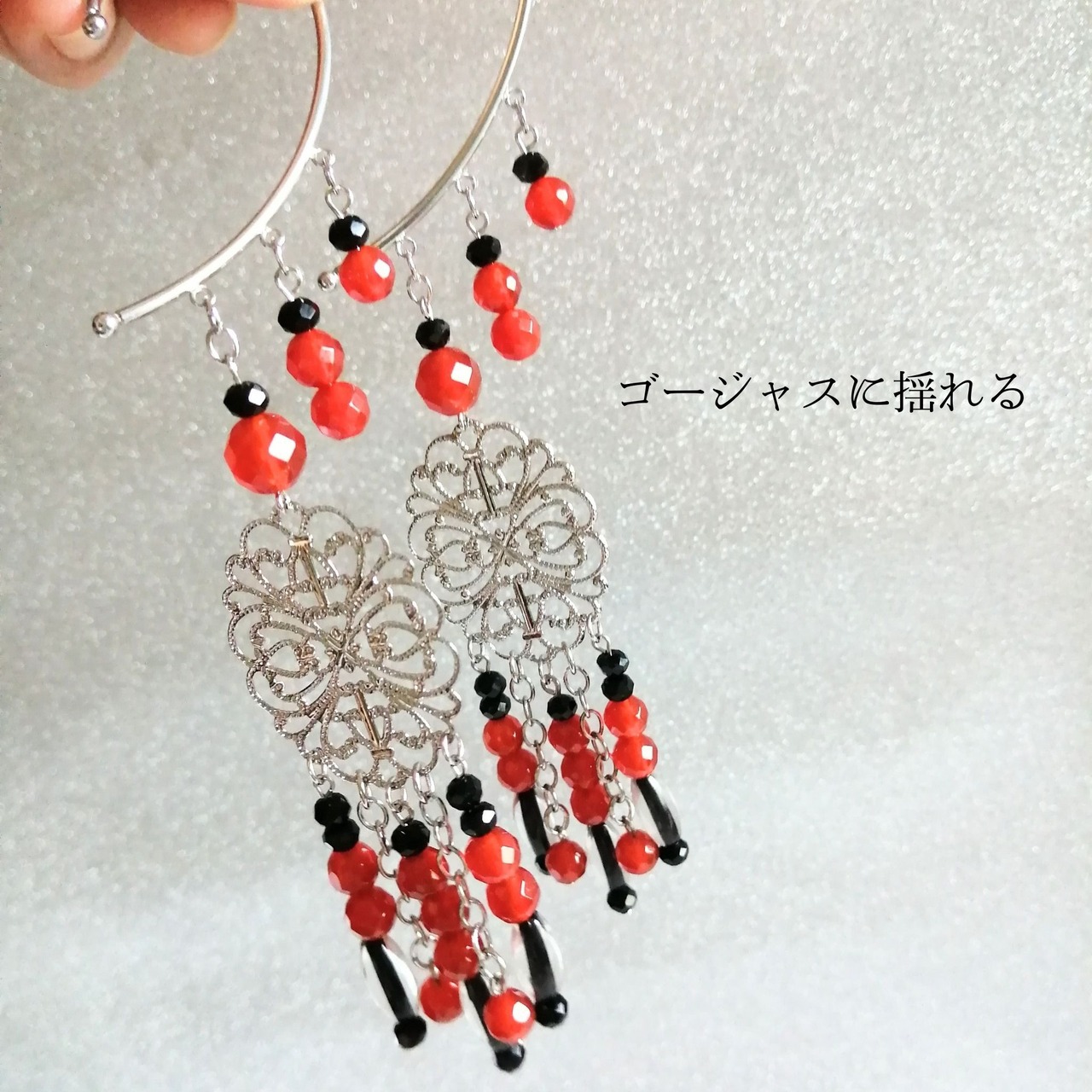 カーネリアンが美しい華やかなシャンデリアピアス(イヤリング)