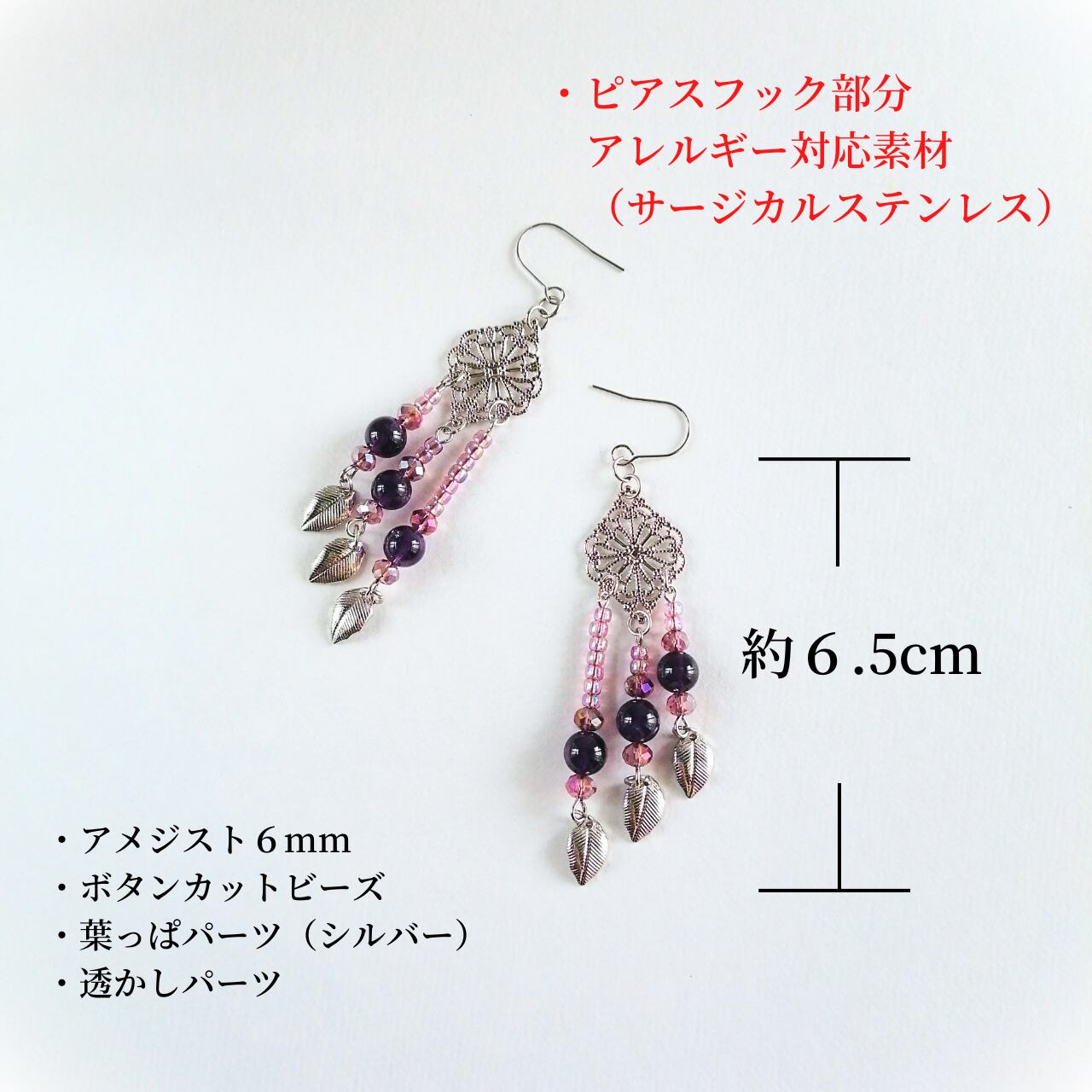 美しい紫色の天然石アメジストが、あなたの耳元を華やかに飾り、心も癒してくれます!